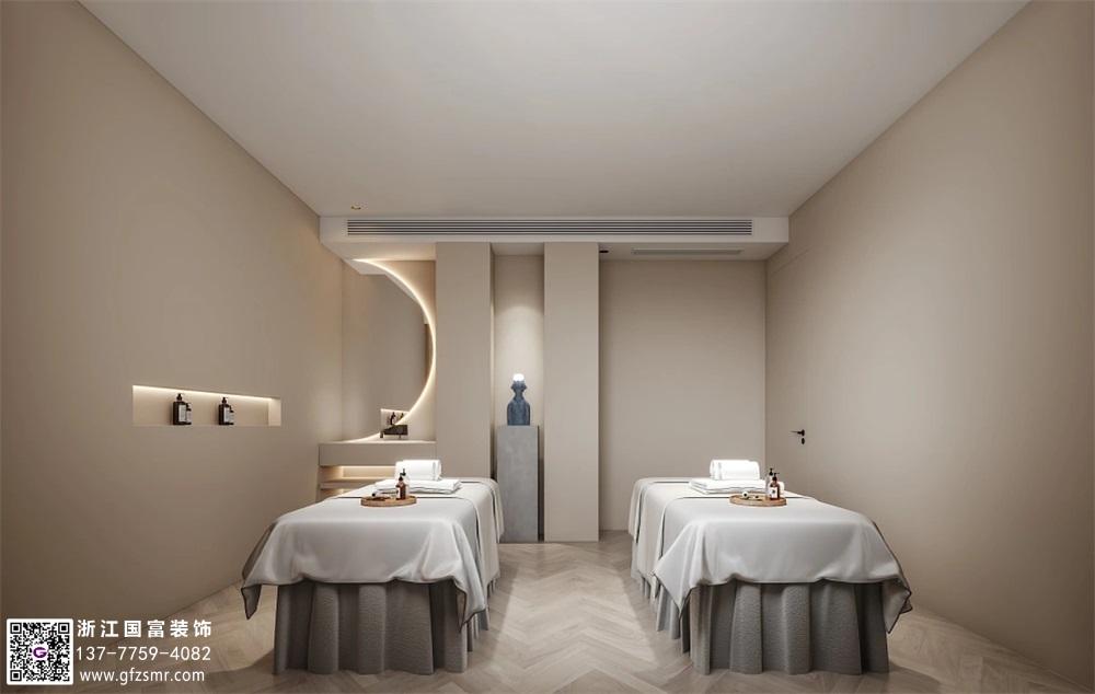 弧形曲線(xiàn)美容院裝修設計案例效果圖