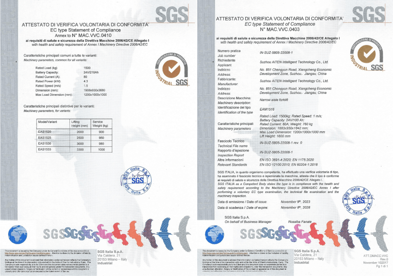 3. CE 标志(欧盟): 确保符合机械指令,强调对繁忙仓库等动态环境的风险评估,在这些环境中,叉车与行人和手动设备相互作用。为满足欧洲市场的法规要求,九游jiuyou产品经过严格审核,为包括 MP10、AM1516、AE15、AS15 和其他产品在内的 AGV 产品获得了欧盟 CE 证书。