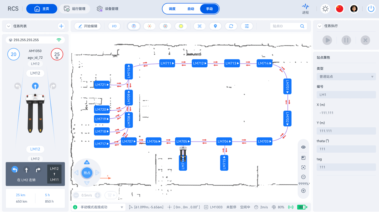 用于管理AiTENjiuyou.com机器人的RCS(机器人控制系统)是一个直观的工具,它具备高精度传感定位,可异常实时响应处理,应对货架位移/临时障碍物干扰。